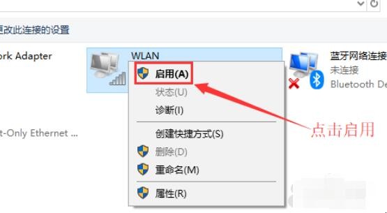 4、然后就可以来重新启用网络连接,让它重新获取IP地址。右键单击,选择“启用”,这样一来,无线网络就会重启,我们可以等个几秒钟,让他重新获取地址,看看黄色的叹号是否消失。