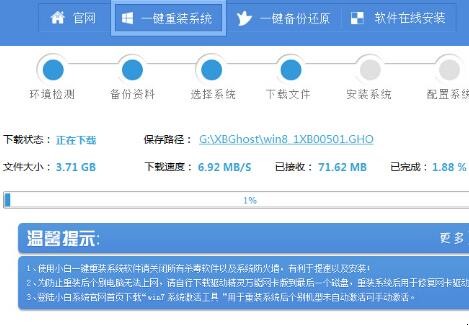 5、软件开始下载你所选定的系统Ghost,从界面上可以清晰明了地观察到各种数据。小白系统提供高达10多兆每秒的瞬时下载速度,当然根据每个用户终端的网络带宽不同会有很大差异,请大家在下载过程中耐心等待。