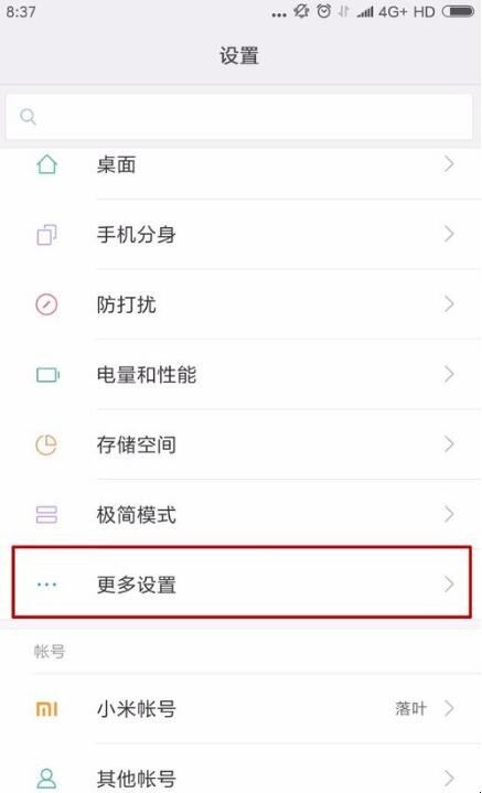 1、打开USB调试必须先开启开发者选项,完成开发者选项的开启后我们进入设置,向下拉,找到更多设置并点击进入。