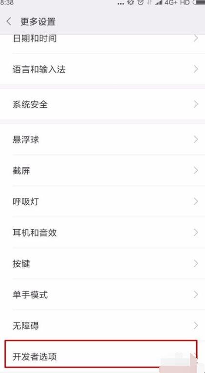 2、在更多设置里我们也向下拉,找到开发者选项并点击进入。