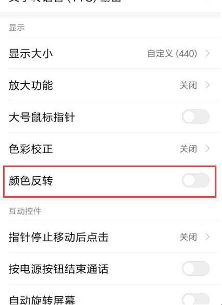 4、点击【颜色反转】的开关,开关变为灰色就是关闭了此功能,关闭之后颜色恢复正常。