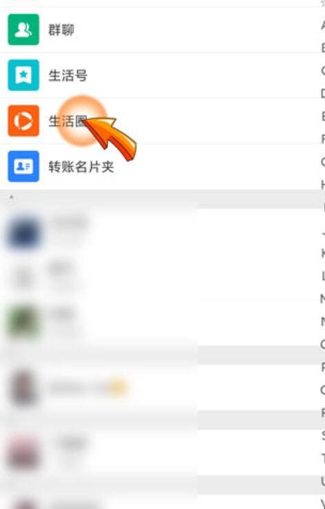 3、点击页面中的“生活圈”选项,即可查看支付宝朋友的相关动态。