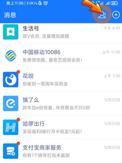 2、在消息页面的右上方会有一个“人像”图标,然后点击进入。