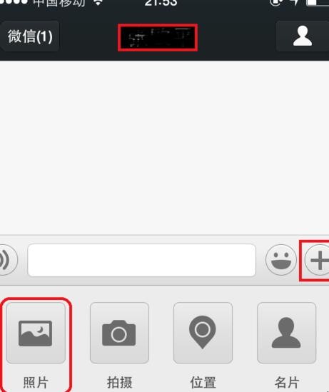1、首先选择进入微信聊天窗,点击对话框旁的加号,再点击“照片”。