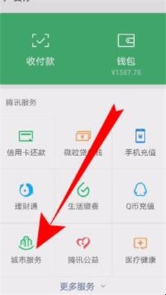 1、打开手机微信,点击右下角的【我】,选择【支付】-【城市服务】。
