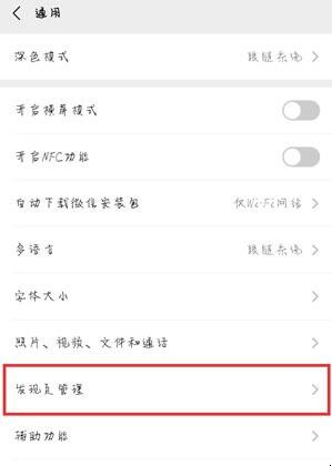 4、然后在通用设置中选择【发现页管理】进入即可管理发现页面的功能。