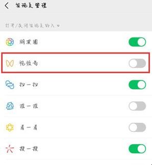 5、最后将【视频号】右侧对应的滑块关闭,显示灰色则表示视频号功能已关闭,当然我们也可以在此页面关闭其他不想使用的功能。