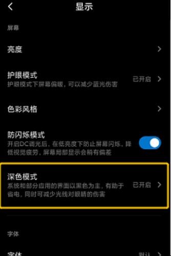 3、最后在显示的界面中找到【深色模式】功能,就能在微信7.0.10测试版中开启黑暗模式。