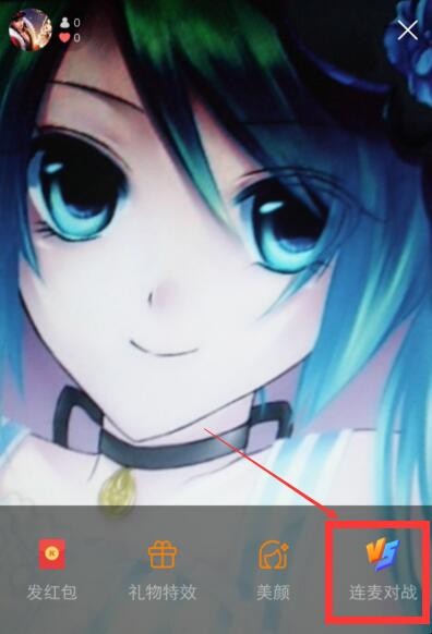 1、想使用快手的连麦对战功能,大家应该先点击右上角按钮进入拍摄页面,在自己的直播间里选择底端按钮找到“连麦对战”功能。