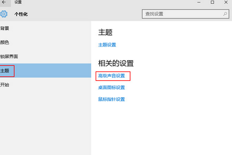 2、点击界面左侧的“主题”选项,然后在右侧点击“高级声音设置”下一步。