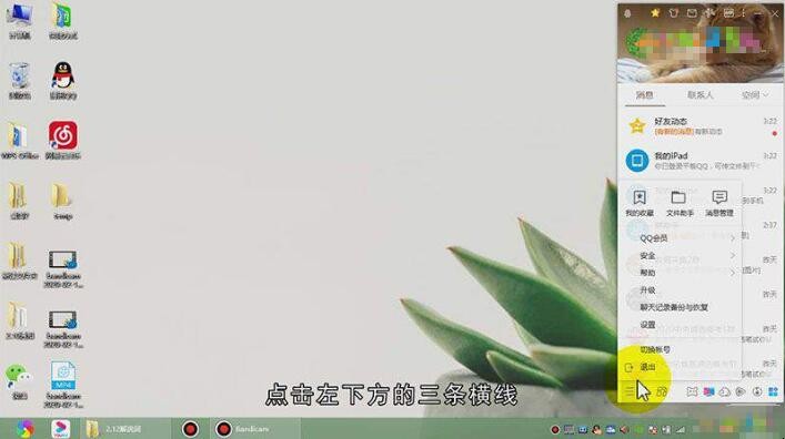 1、首先打开QQ主界面,点击左下方的三条横线,选择【设置】。