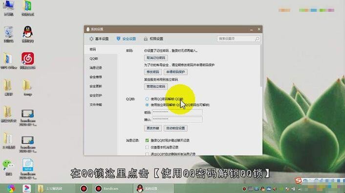 2、点击上方正中间的安全设置,在QQ锁这里点击【使用QQ密码解锁QQ锁】,点击右上角的叉号即可进行保存。