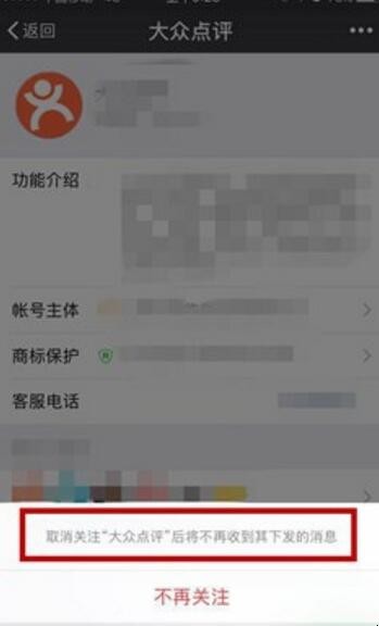 5、取关后,该公众号就不会再给我们发送推送消息了。