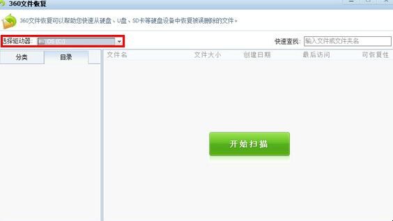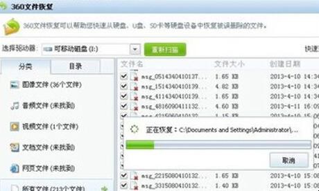 2、使用360文件恢复工具,在选择驱动器中选择手机盘符,并点击开始扫描进行文件恢复。扫描结束后在目录中按照第一步的路径导出微信账户文件夹中的所有内容。
