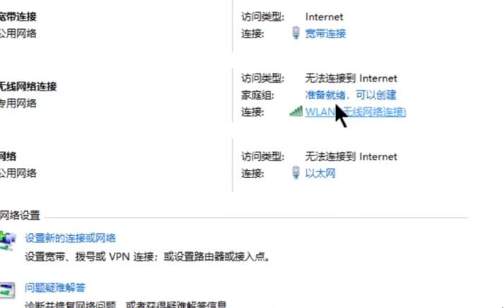 3、进入到网络和共享中心,点击WLAN无线网络连接。