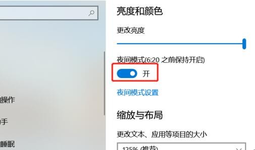 2、然后开启“夜间模式”。