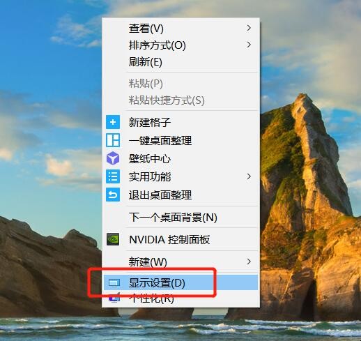 1、首先在桌面右击选择“显示设置”。