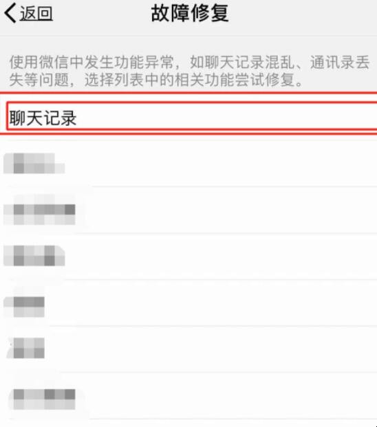 4、接下来我们会进入到故障修复的界面我们可以在故障修复界面下方的菜单中选择聊天记录选项,然后只需要等待自动修复就可以了。