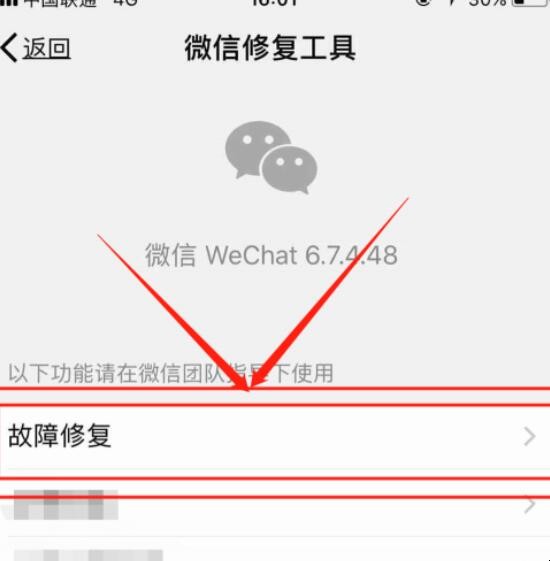 3、接下来我们会进入到微信修复工具的界面我们可以在这个界面下方选择故障修复选项。
