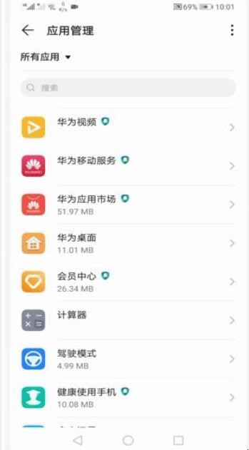 2、在应用管理中可以看到手机软件所占的内存数据。