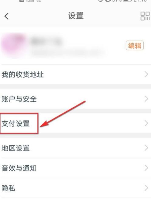 3、在设置页面,找到【支付设置】选项后轻触一下。
