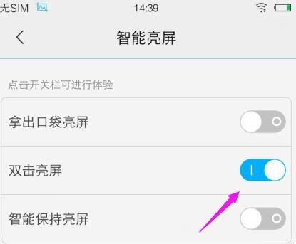 5、【双击亮屏】的开关没开,就按下开关开启。