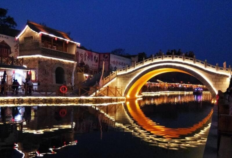 6、利用水面。夜晚河面上的桥梁,两岸的建筑、行人,在水面的倒映下,是夜晚独有的景色,如果利用好灯光在水面中的倒影,会让画面看上去更明亮清晰。拍灯光倒影时,一般采用对称式构图,尽量选择平静的水面能让倒影更清晰,当然如果拍摄得当,微波荡漾的夜景也很美。