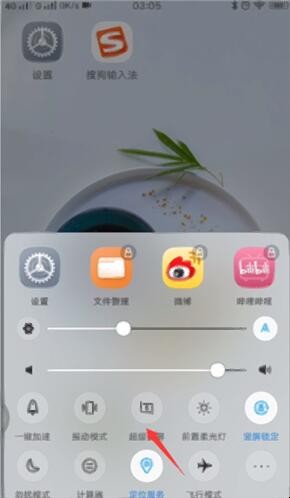 4、你也可以用从屏幕下方调出菜单栏,长按超级截屏。