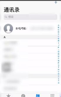 2、点击“电话”图标,选择底部的通讯录选项,屏幕上方可以查看本机号码。