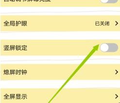 3、进入到显示和亮度设置界面之后我们需要在其中找到竖屏锁定这个选项,这时他后面的开关是关闭的,我们将它开启即可。