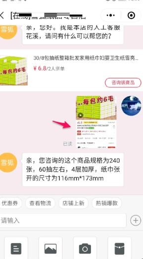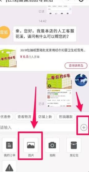 3、进入到客服界面,点击下方的“+”号,就会弹出相片选项。