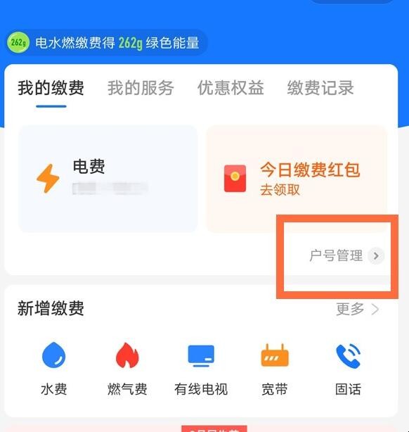 3、在“我的缴费”栏,点击【户号管理】即可查看交过电费的户号。