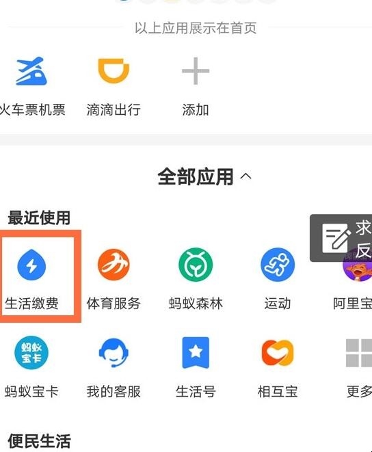 2、点击【生活缴费】。
