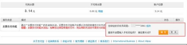 3、点击【确定】即可。建议在关闭余额支付功能之前先绑定手机,如需要再次开启余额支付功能,可使用手机开启余额支付功能。