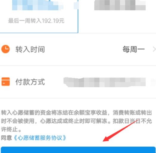 4、在下一步中会出现每周存入以及每月存入两个选项,系统会自动计算金额,根据自己的需要去选择即可,最后输入付款方式即可。