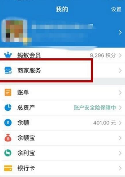 2、点击支付宝首页有下角的“我的”切换按钮,切换页面。然后点击头像下面的“商家服务”按钮。
