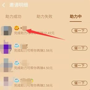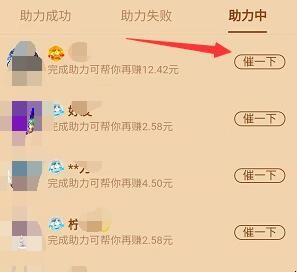 3、找到了以后,点击后面的催一下,就可以继续发送你的邀请给他了,这样就可以让他帮助你助力了。