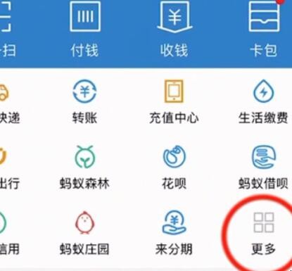 1、进入到支付宝页面,在服务列表中,点击最后一个“更多”选项。