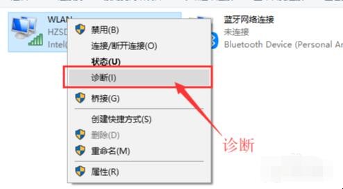 1、如果通过以上重启网络连接叹号还存在,那么可以试一下“诊断”功能。在打开的网络连接界面中,找到有故障的无线连接“WLAN”,右键单击并选择“诊断”,然后等待它诊断完成。