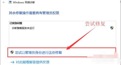 2、当诊断完成后,可以通过尝试修复网络连接。