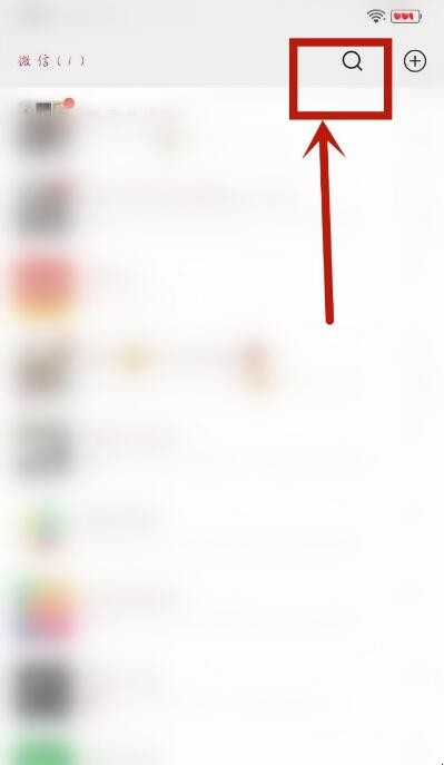 2、登录成功后,在微信页面中的右上角有一个表示搜索的图标,打开它,打开以后在搜索框里搜索邮箱。