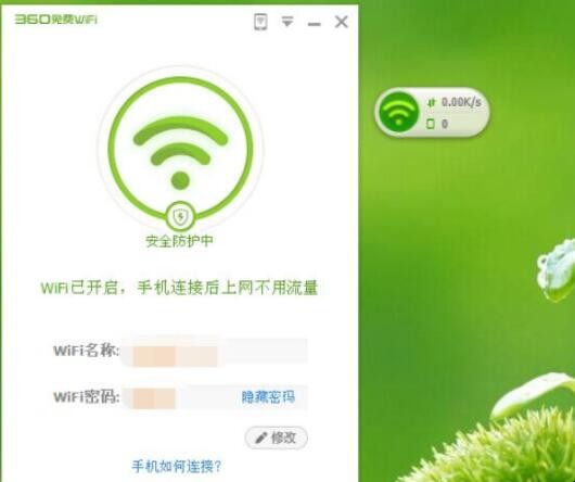 4、当开启后,会出现这样的图标。右上角的小框会显示你连接的设备的网速,即多少K/S,还有你连接设备的个数,也就是那个带有手机图标的东西会告诉你。