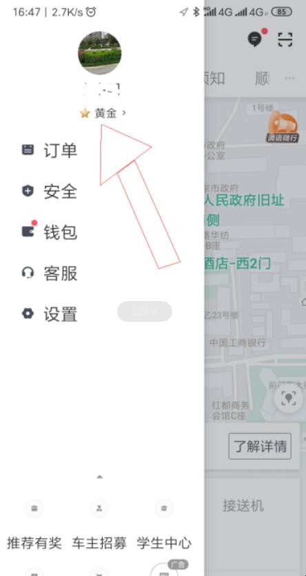 3、得到界面头像下的五星符号就是乘客的等级,若想要得到星级的具体信息还可以点击五星查看。