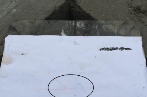 1、第一步,下面的人将激光垂直仪从投点层将点打上来,顶层的人用激光板接点。为了减少仪器误差,投点的激光垂直仪分别旋转90`、90`、90`或者180`、90`、180`,激光板上看误差,4个点取中心尽量减少误差。把中心点做好标记。