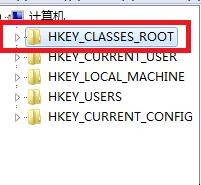 2、在弹出的窗口中点击“HKEY_CLASSES_ROOT”前面的小三角。
