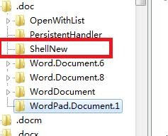 5、把名称设置为“ShellNew”,关闭注册列表,回到桌面,新建中就出现了WORD等文件。