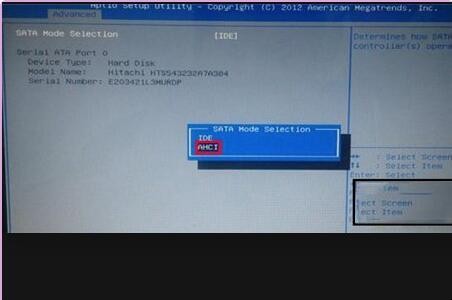 3、然后随后会弹出一个模式选择窗口,在这里我们通过上下方向键移动光标选择“AHCI”模式,接着按回车键执行即可。