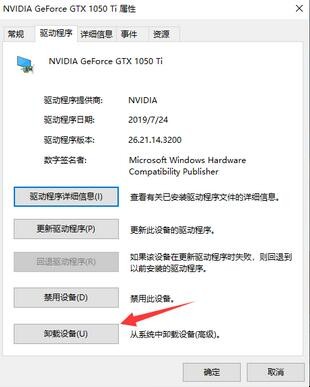 3、在属性窗口中切换到驱动程序选项卡,点击“卸载设备”。