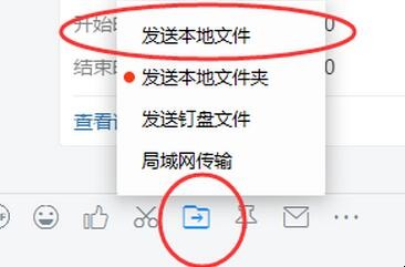 2、接着点击“文件夹”图标,选择“发送本地文件”。