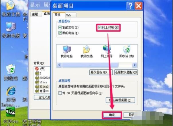 4、将“网络邻居”或“网络”勾选上,然后按“确定”保存设置即可。